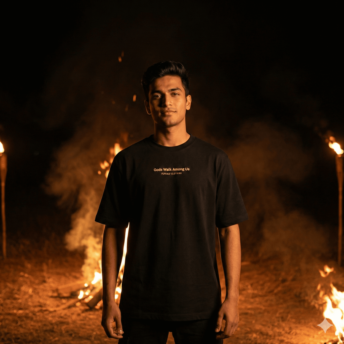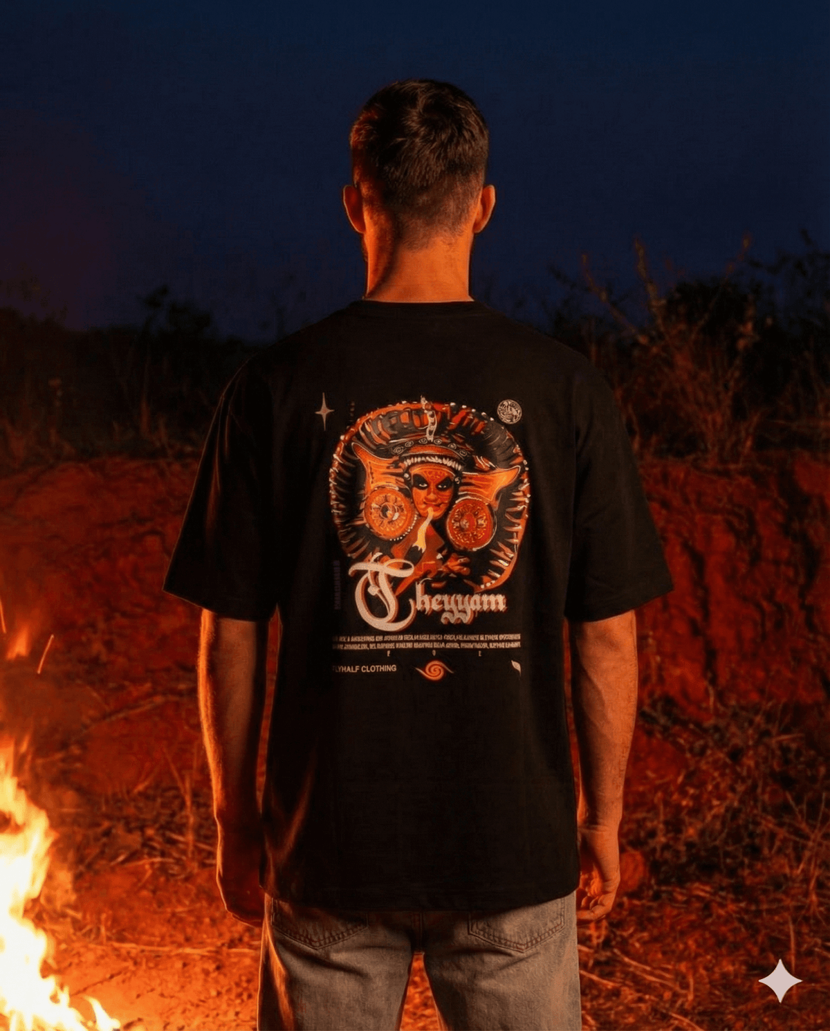 The Theyyam Tee brings ritual, fire, and movement into a modern silhouette. A statement graphic on the back meets a clean, minimal front — built for those who don’t need to say much.